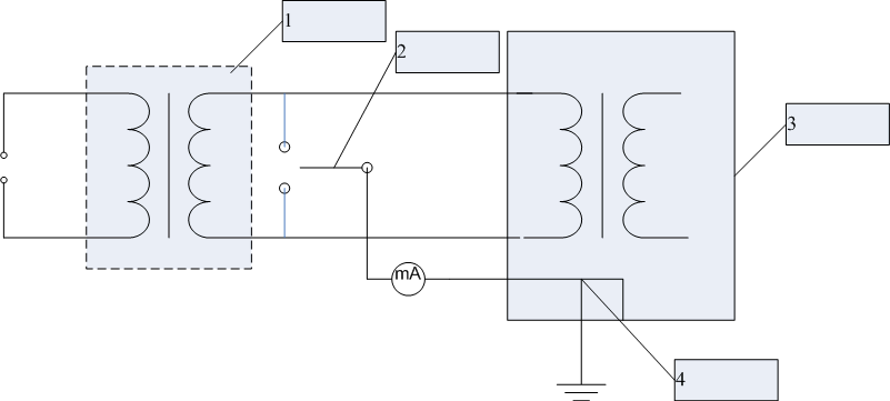 測試時(shí),儀器只用一只隔離變壓器將電源隔離,連接方法如圖2。利用轉(zhuǎn)換開關(guān)2依次測量電網(wǎng)電源的每個(gè)極與機(jī)殼、儀器的可觸及導(dǎo)電部分3之間的泄漏電流。#p#分頁標(biāo)題#e#