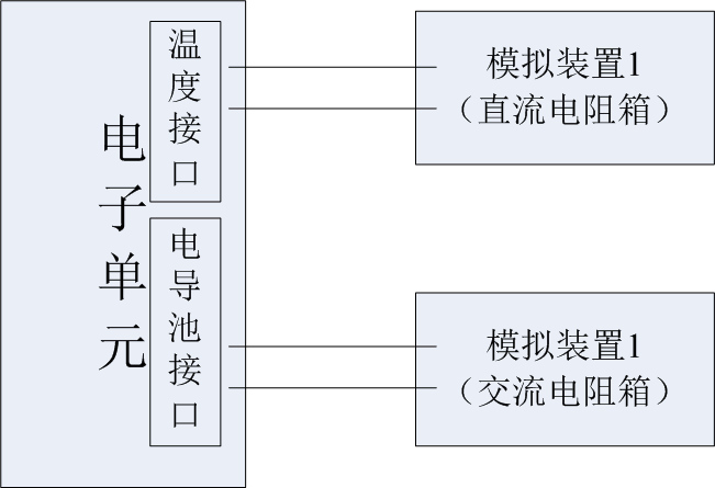 用兩個(gè)準(zhǔn)確度優(yōu)于被測儀器電子單元固有誤差三分之一的電阻箱分別代替電導(dǎo)池和溫度的模擬試樣的電導(dǎo)值,檢測電子單元。